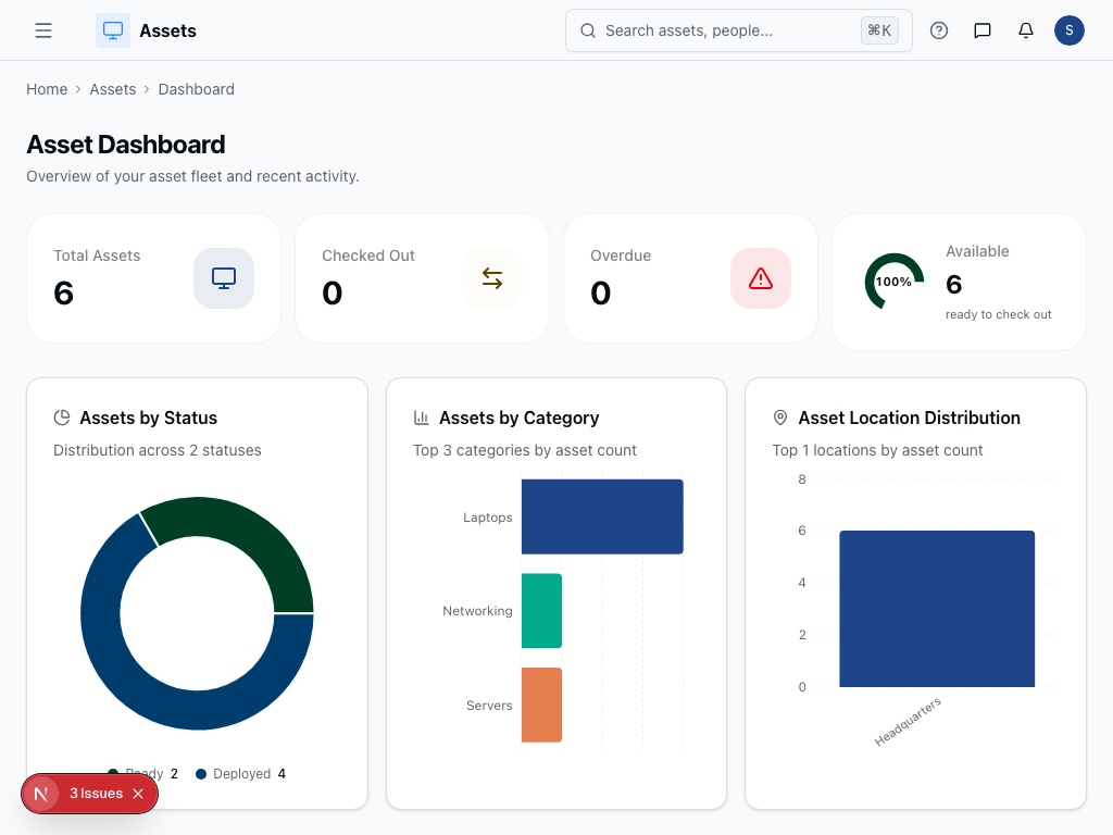 Welcome to the Assets documentation. Manage your asset inventory, checkouts, and locations