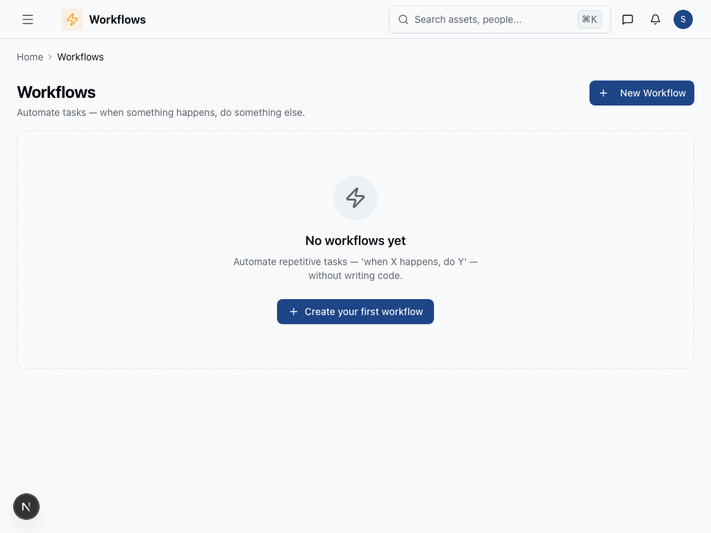 Workflows OverviewAutomate tasks with no-code workflowsWelcome to the Workflows documentation. Automate tasks with no-code workflows Features All Workflows Execution Log Was this page helpful?YesNo